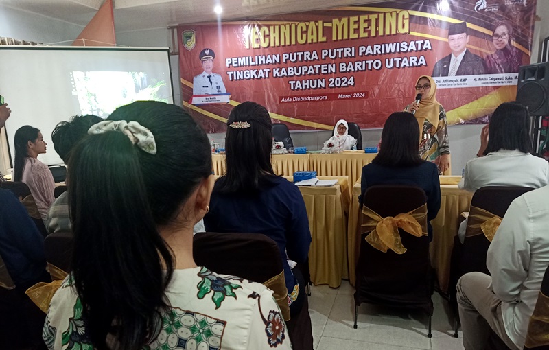 FAKTAKALTENG.COM – Muara Teweh – Sebanyak 40 orang peserta putra dan putri Pariwisata Kabupaten Barito Utara tahun 2024 mengikuti pembekalan dan pemberian materi dari Dinas Kebudayaan, Pariwisata, Kepemudaan dan Olahraga Kabupaten Barito Utara (Disbudparpora Barut), di aula Disbudparpora setempat, Sabtu (9/3/2024).