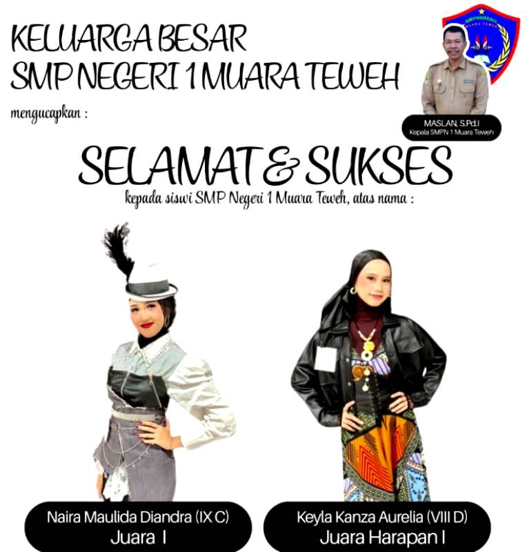 “Prestasi ini membuktikan bahwa siswi SMPN 1 Muara Teweh tidak hanya unggul di bidang akademik, tetapi juga mampu menunjukkan bakat, kreativitas, dan kepercayaan diri di bidang non-akademik,” ujar Maslan, Sabtu (4/10/2025).
