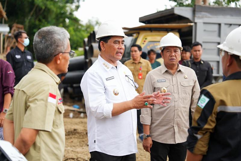 Sementara itu, Kepala Dinas Pekerjaan Umum dan Penataan Ruang (PUPR) Kabupaten Barito Utara, M. Iman Topik, turut mendampingi peninjauan dan menjelaskan progres pembangunan di lapangan. Ia menyampaikan bahwa pekerjaan konstruksi terus dikebut dengan tetap memperhatikan standar teknis dan aspek keselamatan.