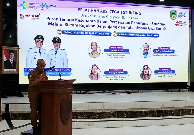 Hal itu disampaikan Pariadi saat membuka kegiatan Pelatihan Aksi Cegah Stunting, di Gedung Balai Antang Muara Teweh, Selasa (14/10/2025).