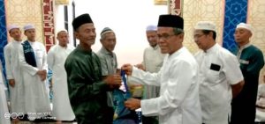 Usai buka puasa bersama dan shalat magrib berjamaah, Kepala Dinas PUPR, M Iman Topik menyerahkan bingkisan kepada pegawai Dinas PUPR Barito Utara. (Red/Adm)