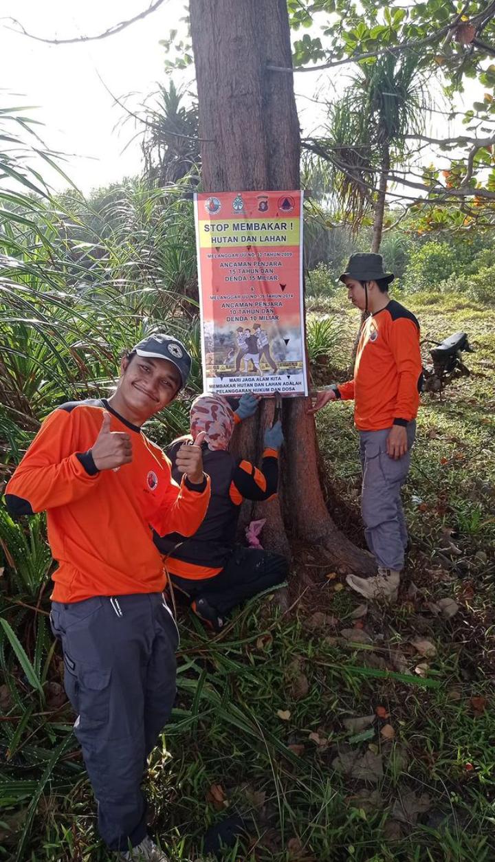Tampak sejumlah petugas TNTP saat memasang himbauan kebakaran hutan dan lahan diwilayahnya.