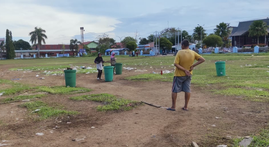 Pihaknya mengeluhkan karena keterbatasan anggota yang membersihkan lapangan tersebut hanya berjumlah empat orang. Sedangkan tumpukan sampah yang berserakan sangat banyak. “Keterbatasan anggota inilah yang membuat kami lambat dalam membersihkan sampah yang ada,” pungkasnya. (Isk)