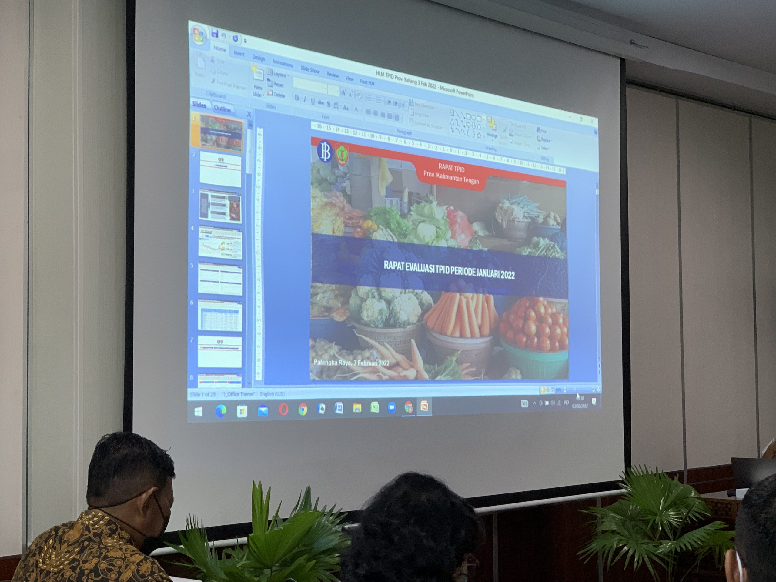 Foto : Nampak salah satu slide PPT Bahasan Rapat Evaluasi Tim Pengendalian Inflasi Daerah (TPID) Terhadap Hasil Rilis Badan Pusat Statistik (BPS) Tentang Inflasi Kalteng Bulan Januari 2022 di Ruang Rapat Bajakah Kantor Gubernur Kalteng, Kamis (3/2).