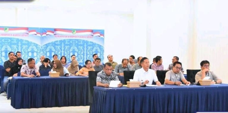 FAKTAKALTENG.COM – Muara Teweh- Penjabat Bupati Barito Utara, Drs. Muhlis didampingi Penjabat Sekda, Drs. Jufriansyah bersama unsur Kepala Perangkat Daerah lingkup Pemerintah Kabupaten Barito Utara mengikuti zoom meeting, bersama Irjen Kemendagri dalam rangka Asistensi Capaian Kinerja Pj Bupati Barito Utara Triwulan IV yang dilaksanakan diruang rapat Rumah Jabatan Bupatai, Muara Teweh.