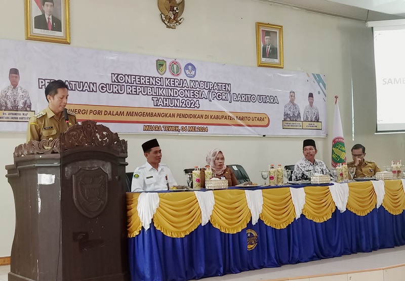 “Kami mengapresiasi dan menyambut baik atas terselenggaranya konferensi kerja Kabupaten PGRI Barito Utara ini, semoga sesuai dengan tema konferensi kerja ini yaitu “Sinergitas PGRI Dalam Mengembangkan Pendidikan di Kabupaten Barito Utara“ semoga dengan semangat kebersamaan ini dapat menghasilkan program kerja yang selaras dengan arah kebijakan pembangunan pendidikan pemerintah daerah kabupaten barito utara,” kata Pj Bupati Muhlis dalam sambutannya saat pembukaan.