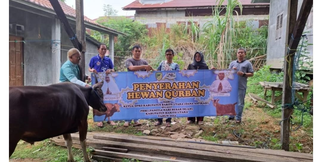 Muara Teweh – Momen hari Raya Idul Adha 1445 Hijriah tahun 2024 dimaknai oleh kaum muslimin dan muslimat untuk berbagi kepada sesama. Di momen ini juga Ketua DPRD Kabupaten Barito Utara, Hj Mery Rukaini menyerahkan 3 (tika) ekor sapi qurban kepada Serkretariat DPRD Barito Utara untuk ibadah qurban, Selasa (18/6/2024).
