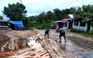 Jalan yang dibersihkan tersebut di Jalan Revolusi dimana jalan tersebut menjadi licin dan kotor akibat tanah yang tergerus air hujan. Dan akan membahayakan keselamatan pengguna jalan, serta telah menyebabkan beberapa warga terjatuh saat melintas, Minggu (6/4/2025).