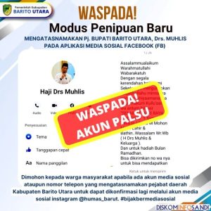 FAKTAKALTENG.COM – MUARA TEWEH – Masyarakat di Kabupaten Barito Utara diminta untuk lebih waspada terhadap penipuan yang beredar di media sosial (Medsos) baik di facebook (FB) WhatsApp (WA) ataupun Instagram (IG) dengan modus menggunakan akun palsu yang mengatasnamakan Pj Bupati Barito Utara, Drs Muhlis.